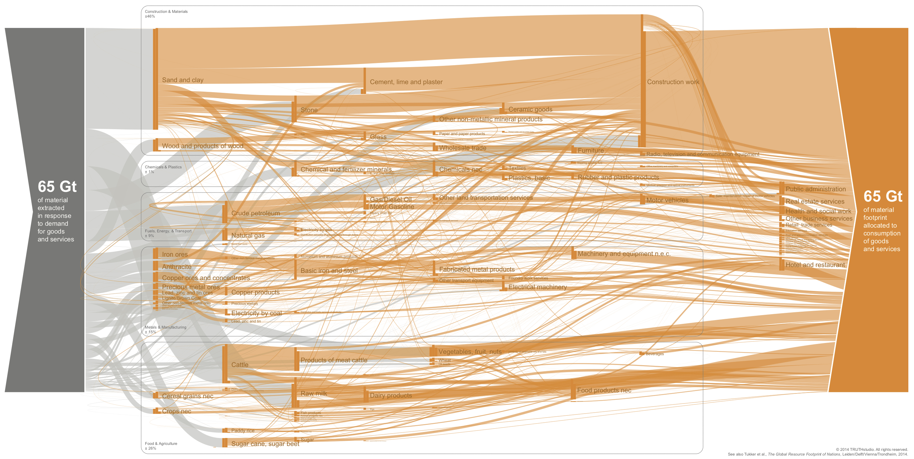 The flow lines show how the economic demand pulls material