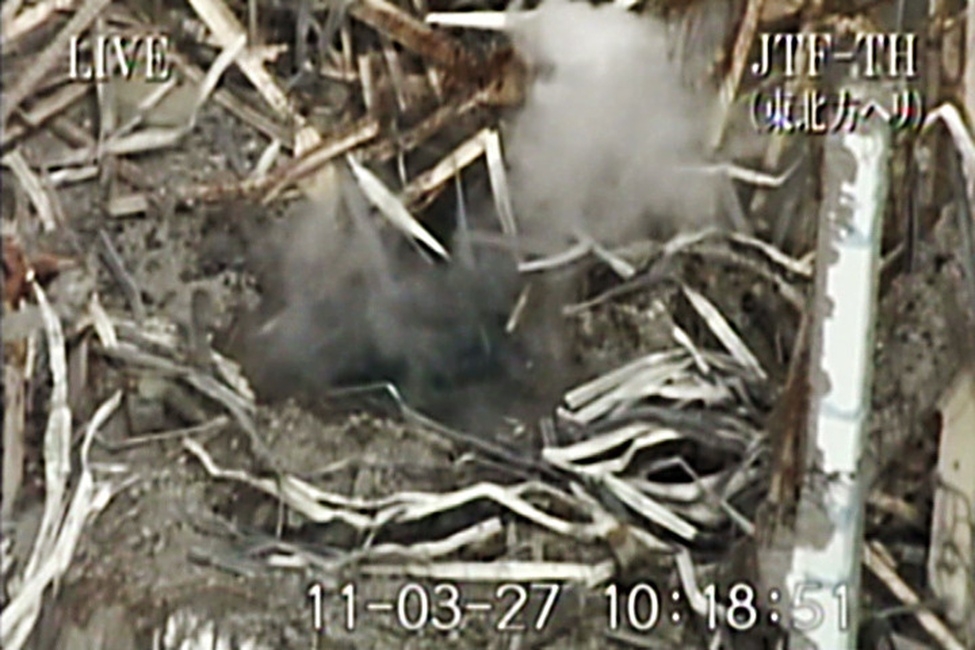 In this image released by Japan Ground Self-Defense Force via Kyodo News, smoke billows from Unit 3 at the stricken Fukushima Dai-ichi nuclear power plant in Okumamachi, Fukushima Prefecture, northeastern Japan, Sunday, March 27, 2011. (Japan Ground Self-Defense Force) |